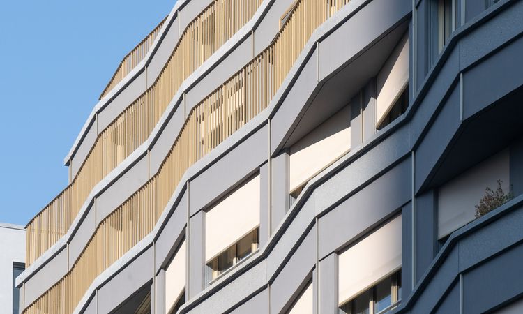 Elegant facade with protruding waves, 65 Parisian high fashion flats