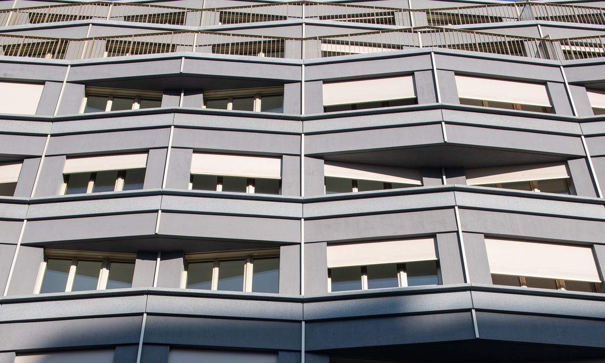 For sun protection, Solozip fabric blinds were chosen to soften the architecture of the building and guarantee optimal protection against the wind. These blinds are covered with warm-colored Mermet fabrics, in keeping with the aluminum joinery and rules of the façade. The possibility of dismantling the guide laterally was a criterion of choice, as was the absence of screws on the surface sheet and the presence of a clip system.