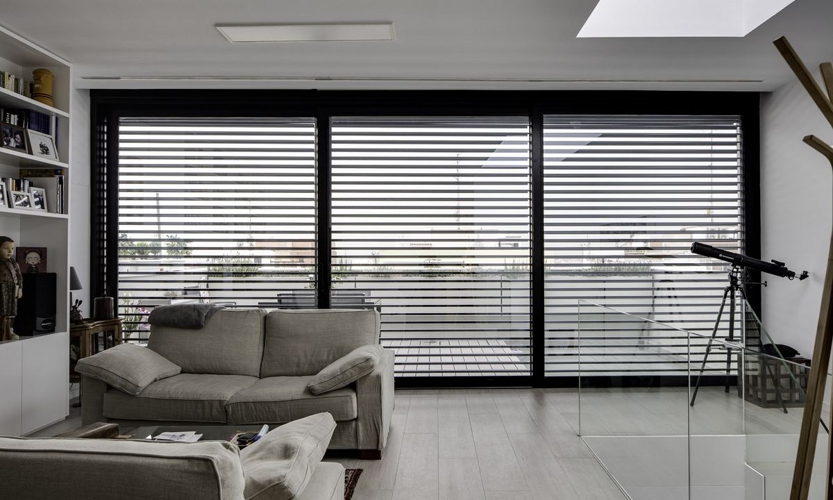 The flat is fundamentally based on light.The facade works as an energetic diaphragm defined by different layers that occupy the whole front. These layers made of complementary materials are unfolded to control light, ventilation, privacy and landscape.