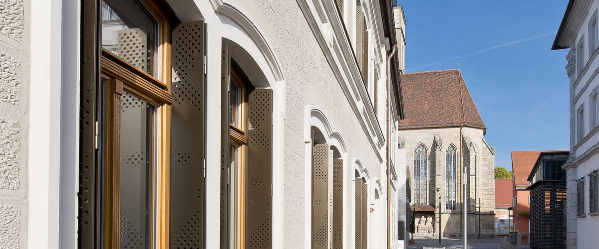 The Service Center in the historical district of the wine-making city of Iphofen was renovated according to plans drawn up by the working group Architekturbüro Reinhold Jäcklein (Volkach) and Architekturbüro Böhm + Kuhn (Iphofen) and equipped with Griesser window roller shutters made of aluminum.