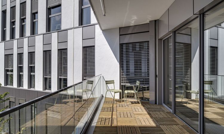 The architect, Iwan Ponsonnet, explains that “Since energy efficiency was a top priority, we made the innovative choice of installing openings to the exterior in the facade on every floor to reduce heat channels. The openings and the venetian blinds form single exterior blocks resting on horizontal rails.”