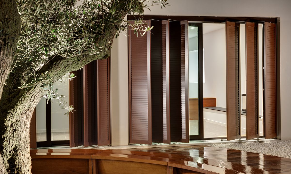 With its pantograph shutters, Griesser provides the first window shutter system that actively controls daylight. The patented product creates an exceptional atmosphere while convincing customers with its wind resistance.