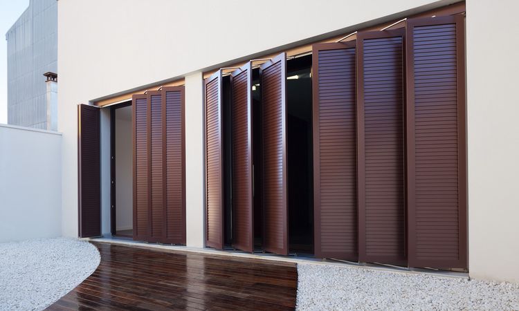 Pantograph shutters are an eye-catcher from the outside too. They are aesthetically pleasing with a modern design and can give any building shell a distinctive look or blend in perfectly with the facade, thanks to a wide range of design possibilities. With regard to the choice of colors, Griesser satisfies every wish. In addition to the standard aluminum and wood, the panel fillings are also available in expanded metal, fabric and facade panels.