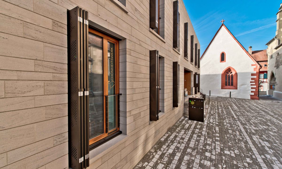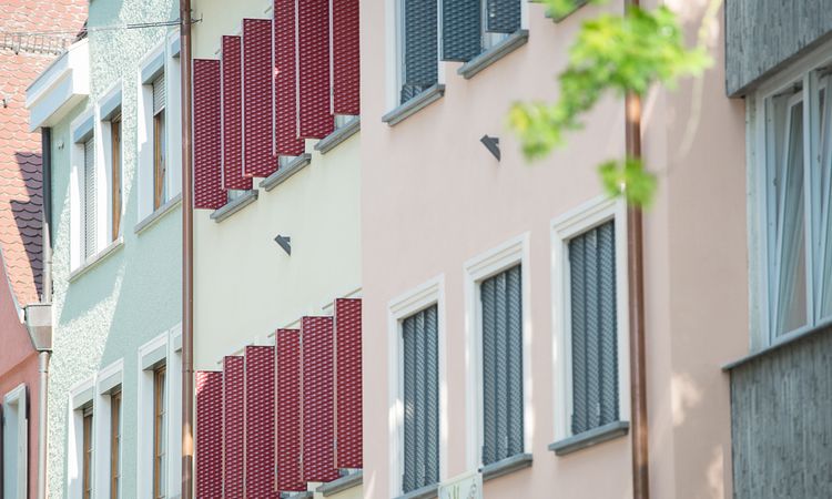 Our Griesser sliding bi-fold shutters offer more than just solar shading. Through their diversity and individuality, they create unique features and foster innovative facade design. The individual leaves are available in a wide range of models and colors. Depending on the client’s wishes, the sliding bi-fold shutters can create a striking visual contrast with the building shell or blend discreetly into the overall look of the facade. For large window facades, sliding bi-fold shutters are an ideal choice.
