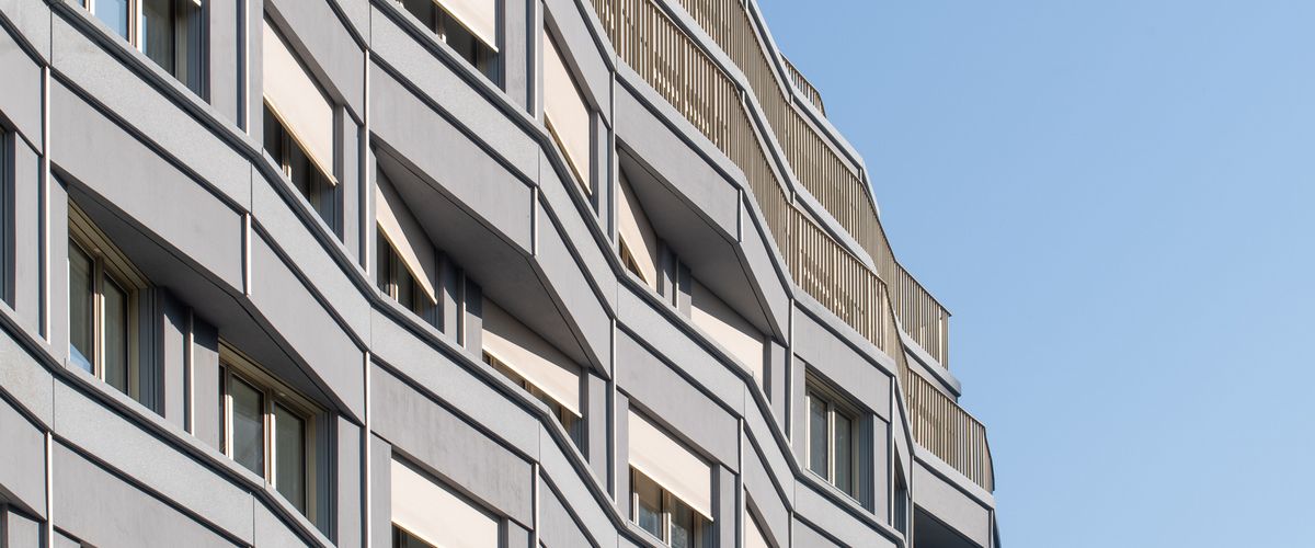 Elegant facade with protruding waves, 65 Parisian high fashion flats