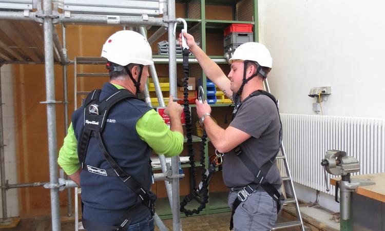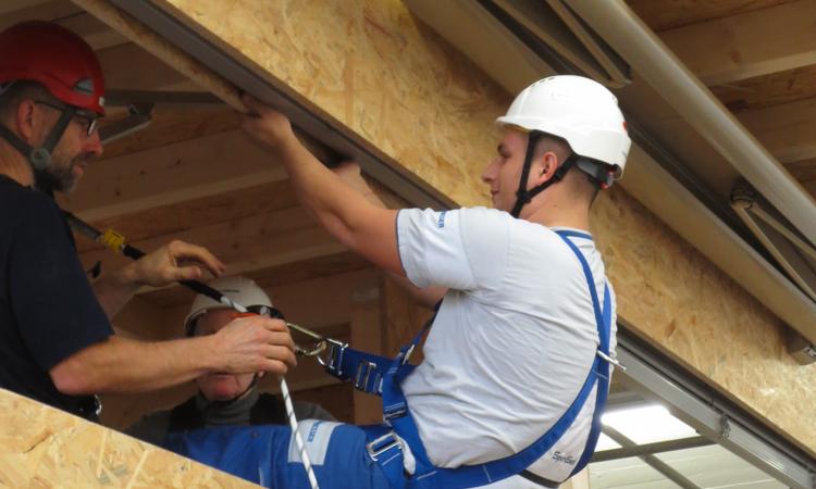 Griesser AG is making new inroads on the topic of work safety, especially at heights. Under the motto "No accidents!", all employees involved at a solar shading system installation are being trained and equipped with modern, new personal safety equipment. Training is done by professional instructors at Griesser AG's own training camp especially set up for this purpose. Here, common installation situations which occur daily during solar shading installs and which require the use of "personal protective fall equipment" (PPE) are practiced. The proper use of the tools in the correct situations can be important to survival in emergencies, which is why rescuing fall victims is also trained and practiced.