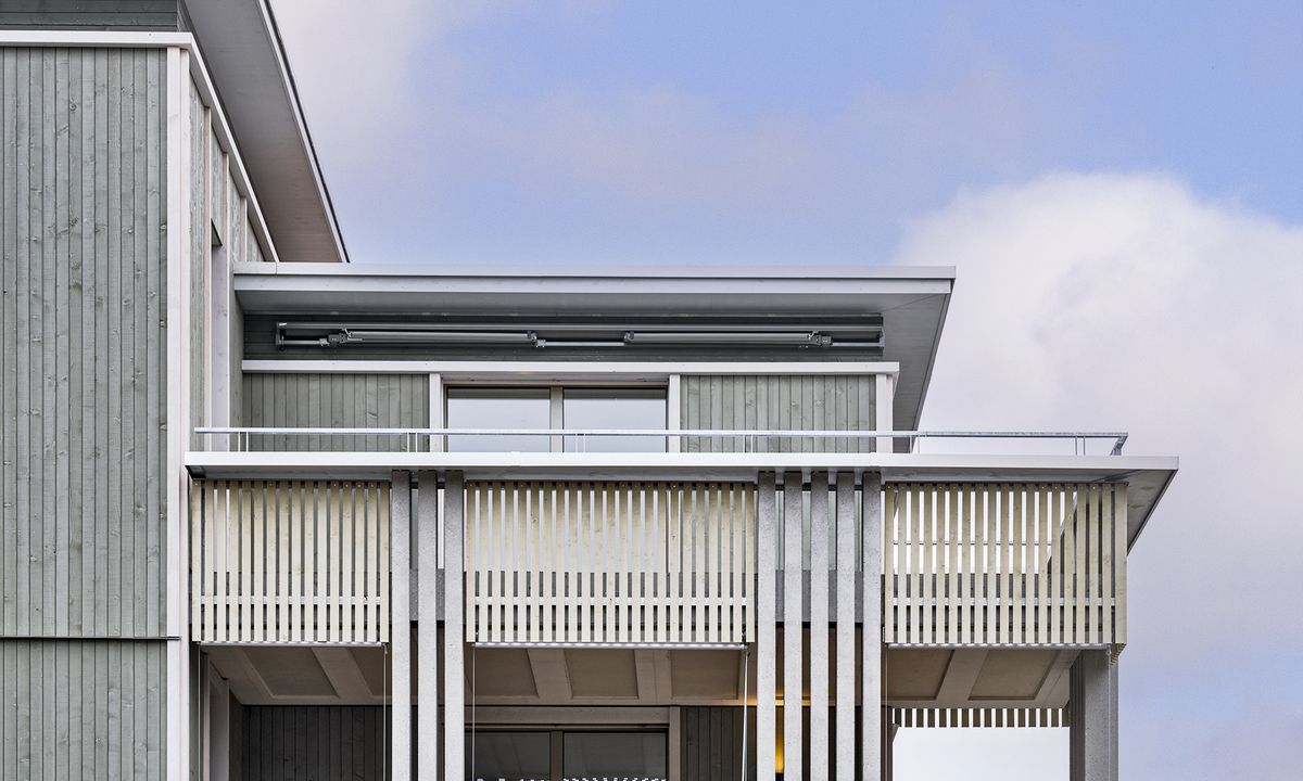 For the loggias that give the building its casual, open structure, the architects opted for the Sigara vertical awning from Griesser. This does not require a header and could therefore be attached by ceiling installation to the edge of the balcony railing above. The robust acrylic fabric withstands wind and bad weather and its light sand color (Cuba Collection 3-708) is reminiscent of natural linen in both color and structure. It therefore keeps the glare and heat of direct sunlight away and transforms the area into a cozy and much-loved place.