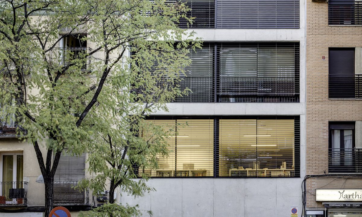 This award winning housing project is located in the centre of Madrid. It is characterised by an innovative design, in which each floor is occupied by a single programmatic unit, materializing the idea of living in an elevated house located in the center of the city.