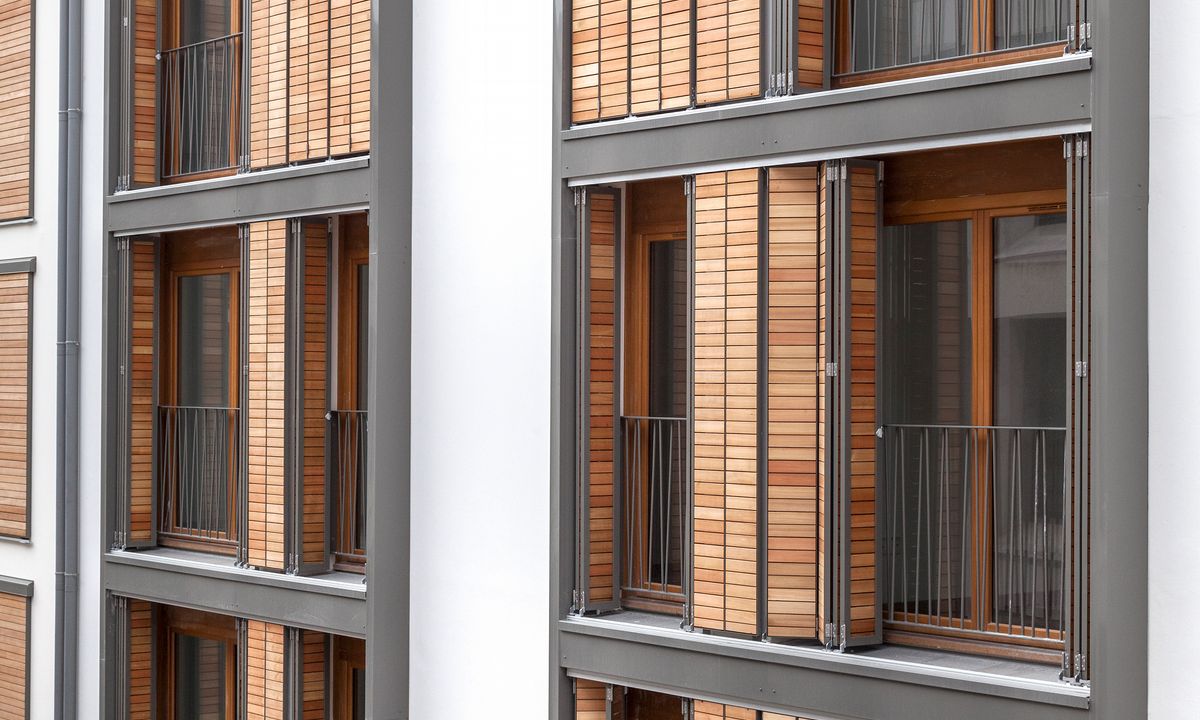 Griesser’s Sliding and Folding Shutters, model H Wood, fit perfectly into the outside design and meet the building requirements, combining style and technical prowess with a quality material, wood.