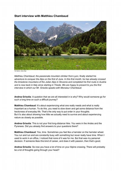 The French mountain climber Matthieu Chambaud has dreamed of crossing the length of the Alps alone and primarily independently. Griesser AG has decided to help him realize this dream by becoming the main sponsor of the project. Above all, we were persuaded by the environmentally friendly and sustainable approach to the project as well as the possibility to vicariously experience this adventure.