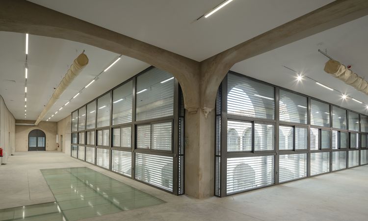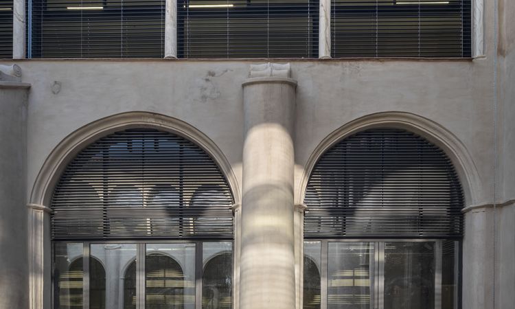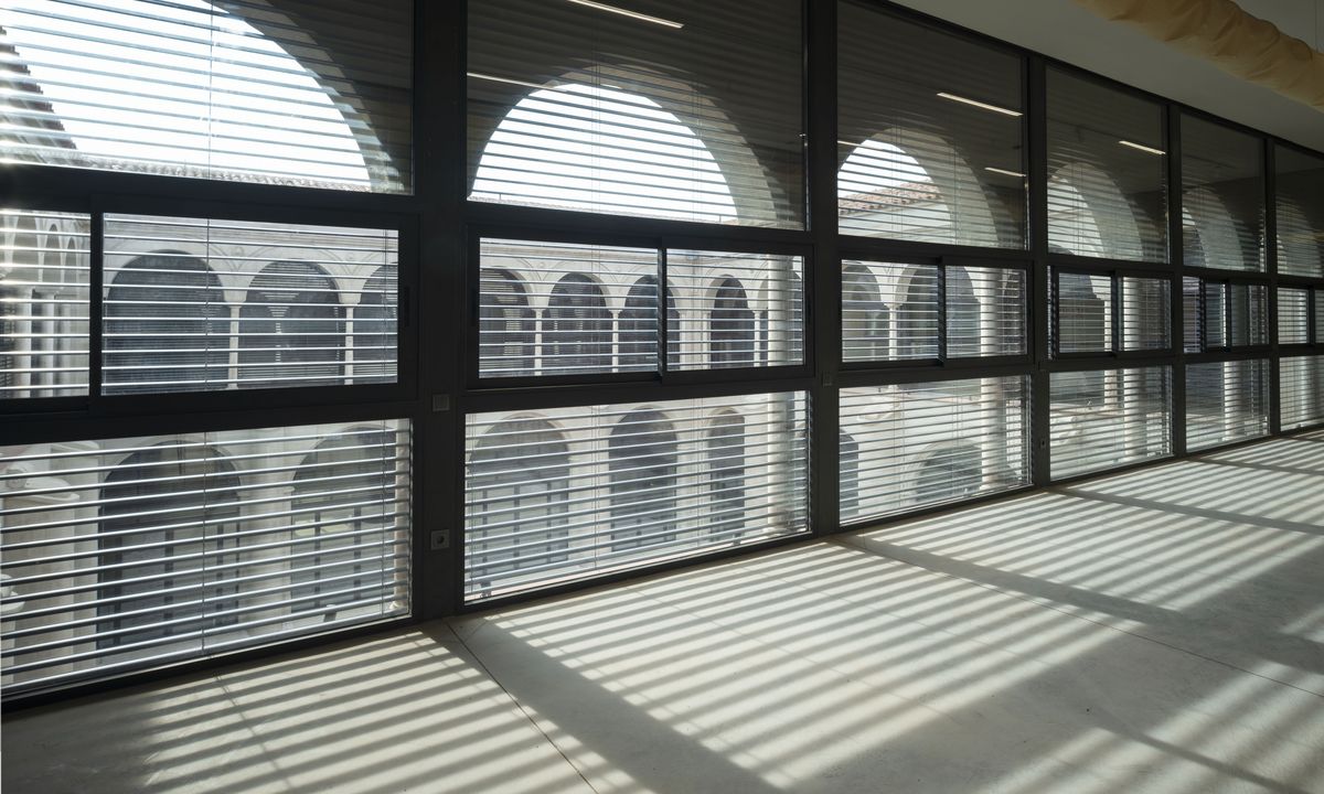 Solar shading has also had a key role to play in the convent refurbishment project. Of the cloisters surrounding the building’s two courtyards, the one around the main courtyard has been integrated into the new school’s facilities. To assimilate it fully into the school and its activities, this cloister has been equipped with windows that provide the arcade inside with natural light. The cloister’s rounded outer arches required a tailored solution, though, in solar shading terms. And the choice here fell on Griesser’s quality products, in the form of its Solomatic® 80 venetian blinds.