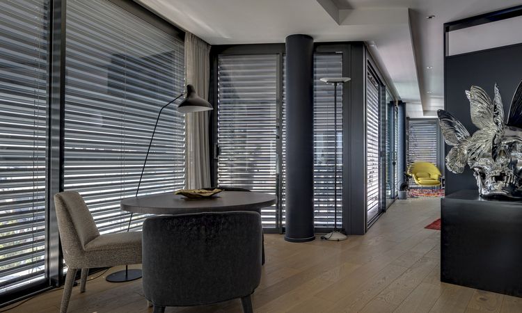 Solozip Box vertical fabric curtains and Lamisol external venetian blinds made by Griesser were chosen for quality solar protection.
