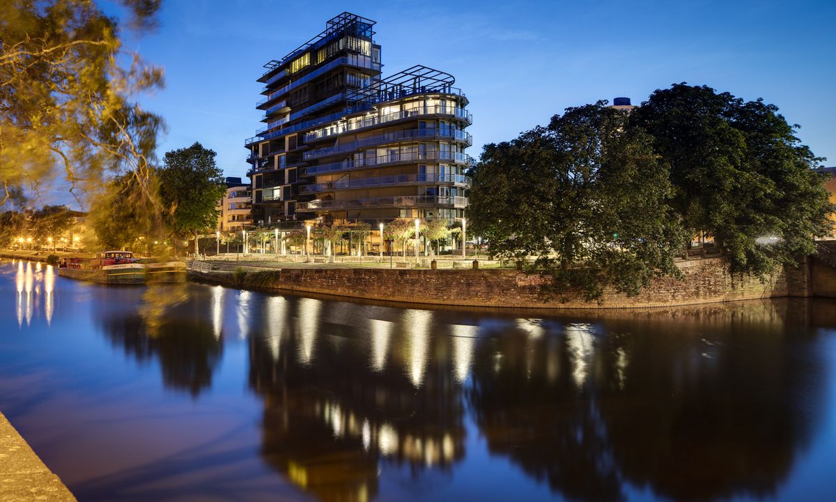 The building, which was designed to resemble a large ship, known as the “admiral”, contains 45 housing units and offices on 11 floors, plus a contemporary design store on the ground floor.