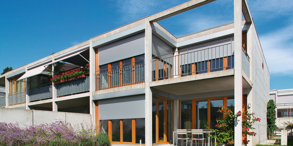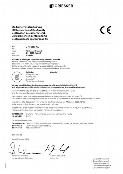 Alucolor creates good ambient air and a lot of light with light and viewing slots. Optionally, you can order the built-in rolling shutters with automatic locking, with safety locking device, with sliding arm and with integrated safety sensing edge for frost.