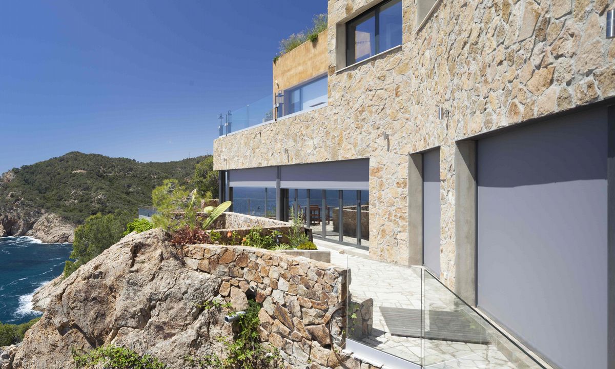 This vertical awning is guided laterally over the total height and is therefore also resistant to strong winds.