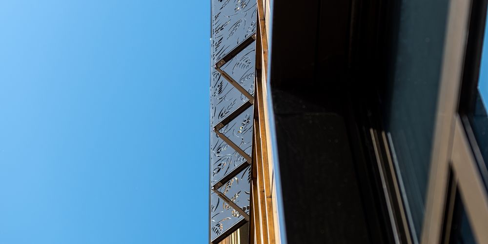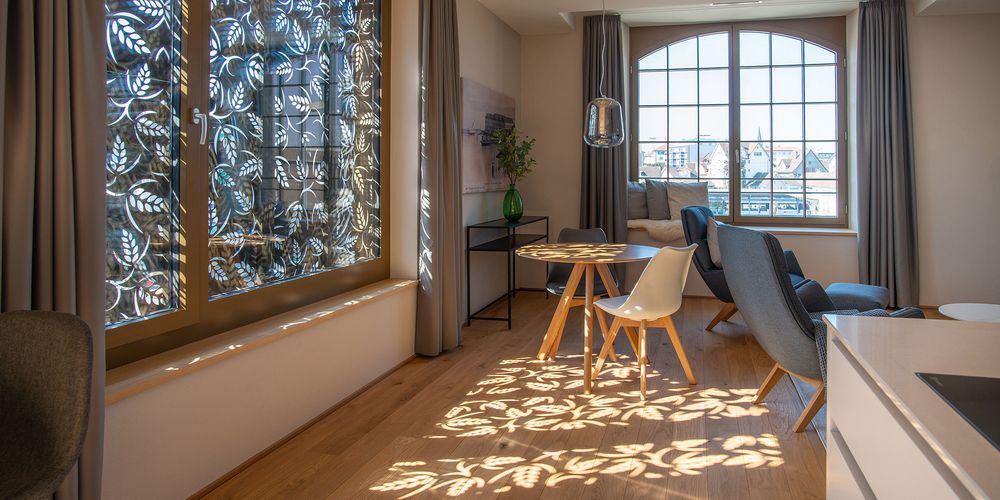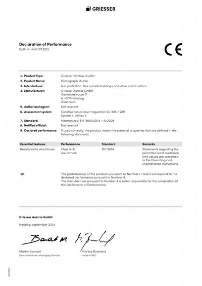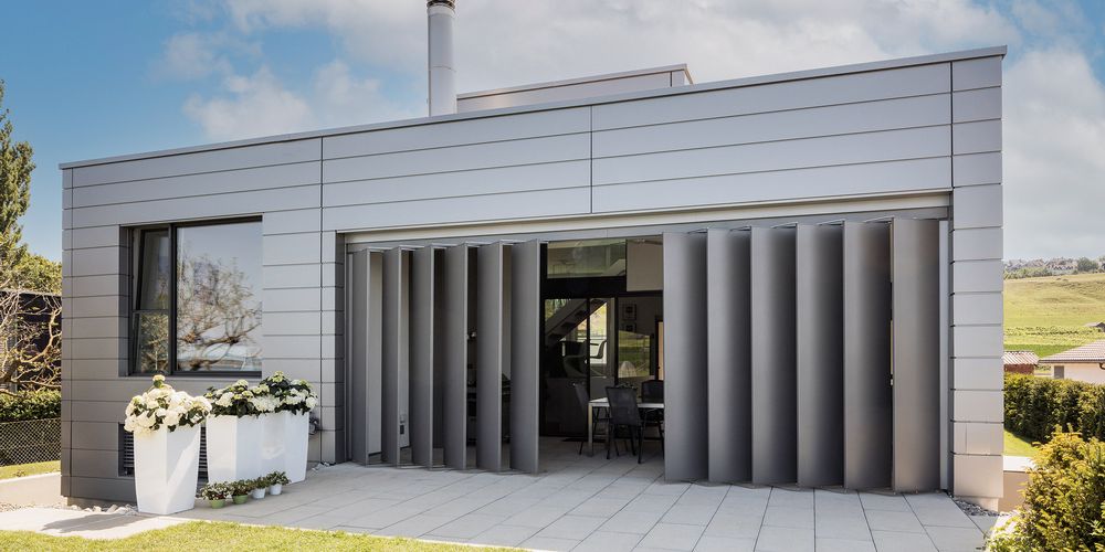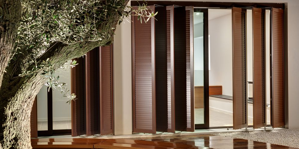 Our patented top product: high quality and technically intelligent. Pantograph shutters are particularly suitable for large windows. They are motorised and resist wind speeds of up to 120 km/h. The horizontally adjustable sashes follow the course of the sun and create sophisticated lighting moods and shadow effects. Only at Griesser.