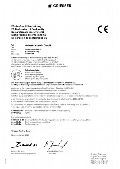 Pantograph shutter from Griesser