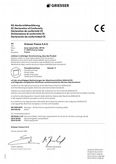 Select your facade awnings from one of our two contemporary fabric collections with a large assortment of colors that help you integrate your solar shading perfectly with your facade design.